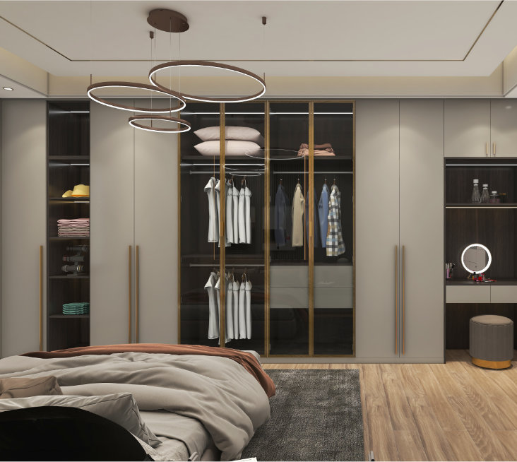主臥怎么裝最好看?舒適感、小情調(diào)、文藝范?高顏值的主臥無(wú)需復(fù)雜的設(shè)計(jì)運(yùn)用偉業(yè)生態(tài)板Pro,輕松締造高級(jí)感 案例一 & 輕奢風(fēng)質(zhì)感典雅,奢華大氣選擇明亮的色調(diào),衣...