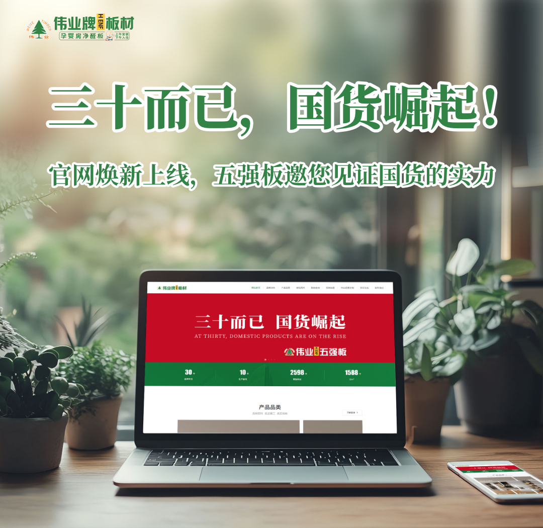 三十年,一棵幼苗足以參天。三十年,一個品牌足以定義“國貨力量”。 今天,偉業(yè)牌板材滿載 “三十而已,國貨崛起” 的磅礴底氣,以全新姿態(tài),實力相見 ——全新官網(wǎng)(...